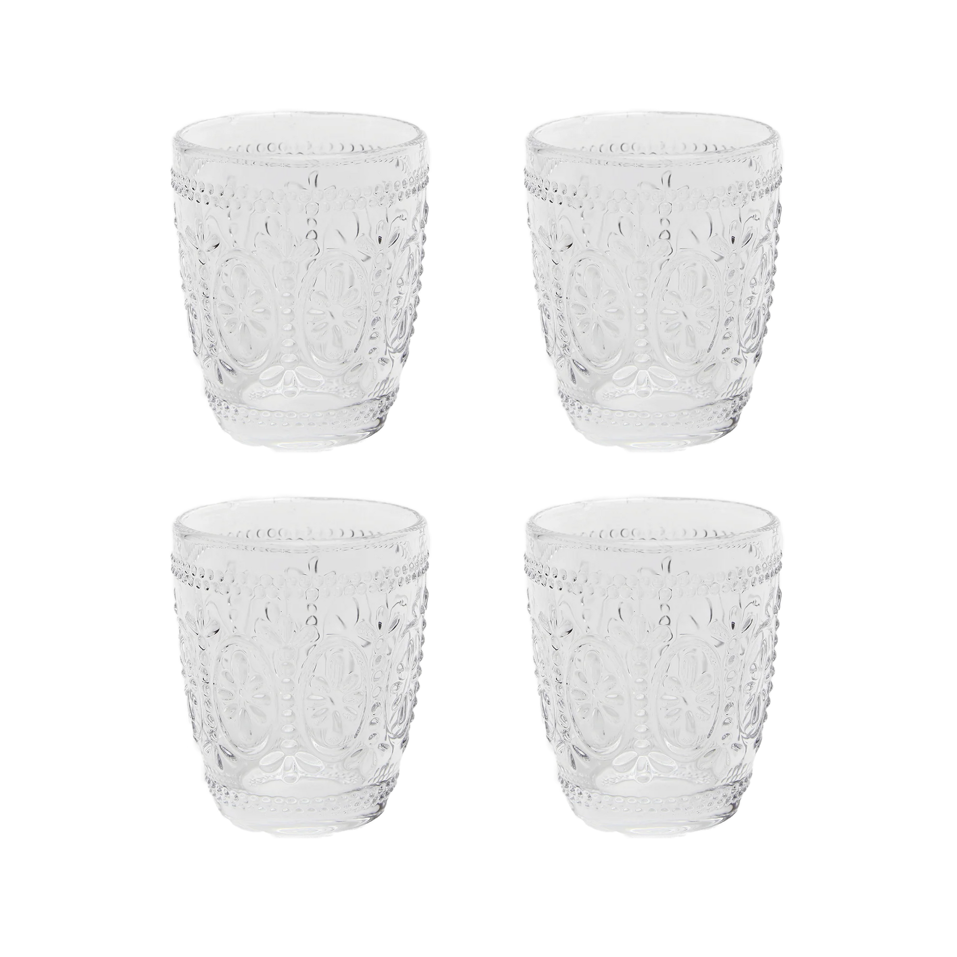 These stunning Tumbler glass set of four featured in this fabulous new Peppermint colour way are made from a durable, thick glass that features a beautiful embossed design. Decorative and functional, they add elegance to any soiree!